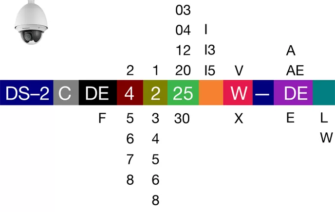 Să luăm unul dintre produsele mai complexe, în acest caz DS-2CD4A26FWD-IPZ-P, pentru a explora semnificația din spatele codului.